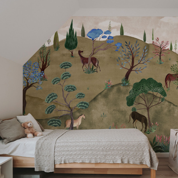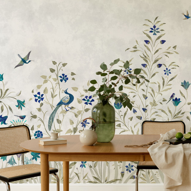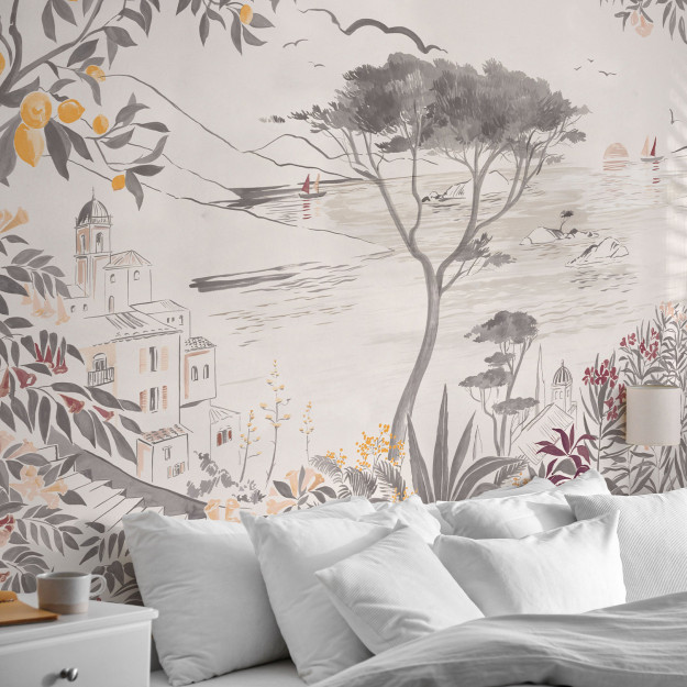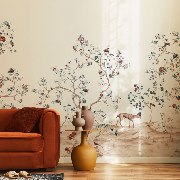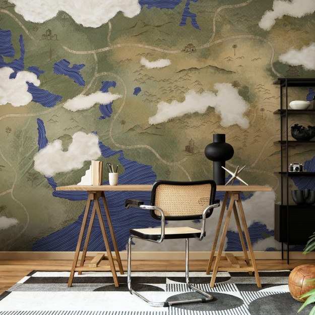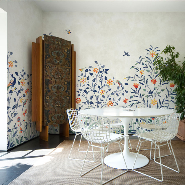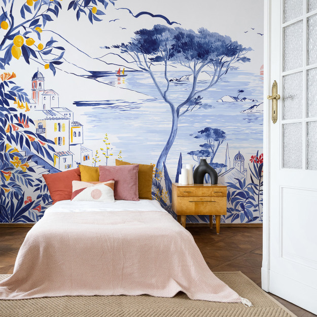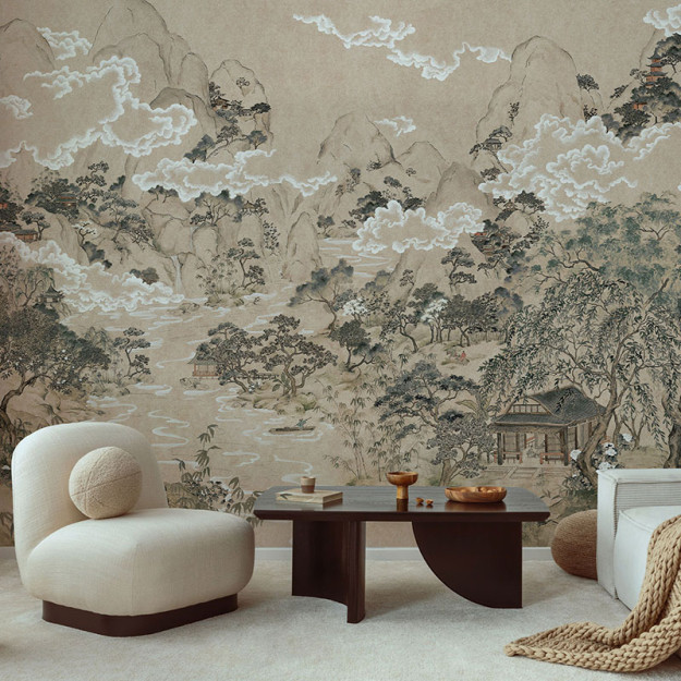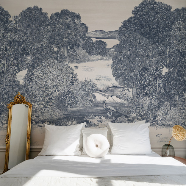 La maison Les Dominotiers s’inspire de l’art du papier dominoté, une technique décorative ancienne revisitée pour créer des panoramiques muraux d’exception. Les collections mettent en scène des décors riches et détaillés, inspirés de paysages, de fresques décoratives ou de motifs artistiques, qui transforment les murs en véritables éléments de décoration.